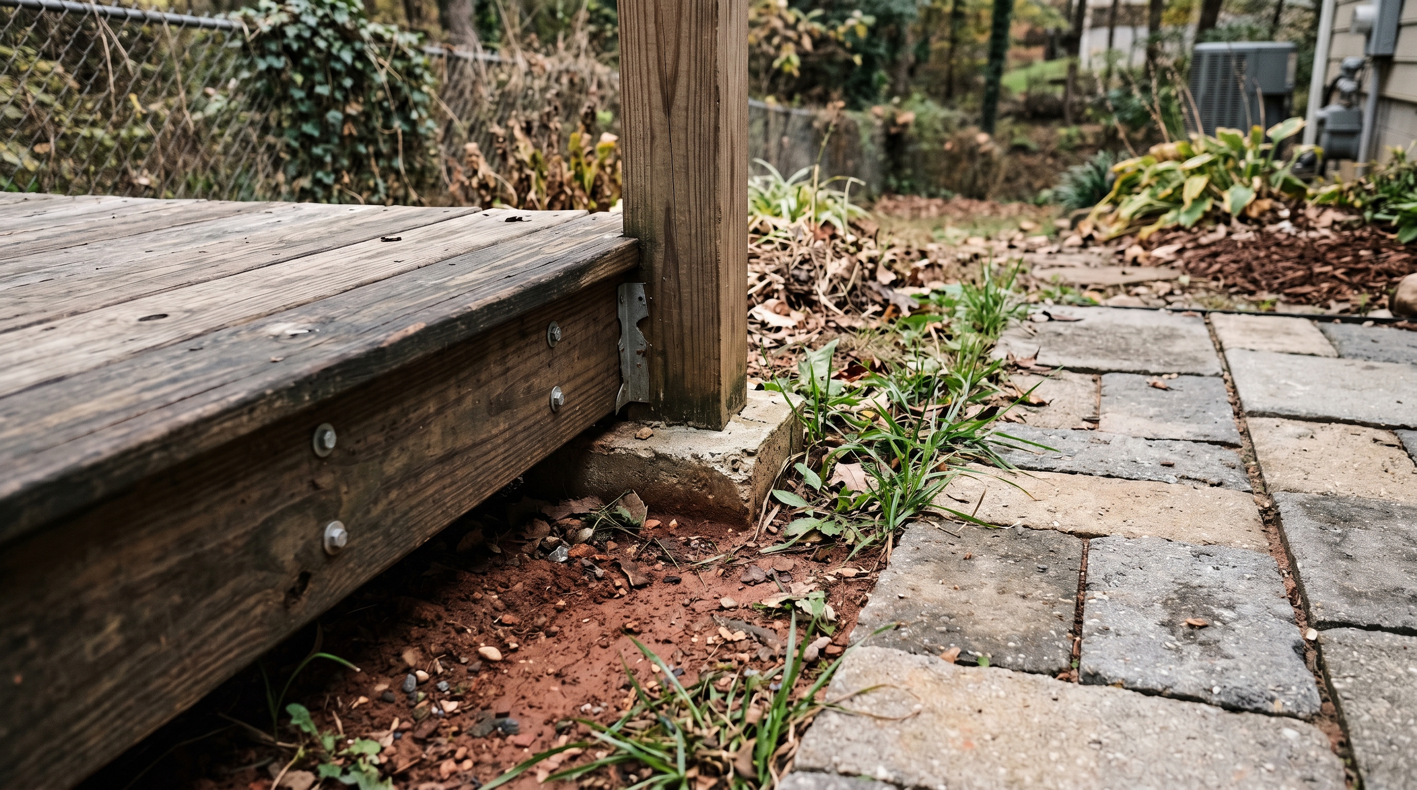 Occasionally, existing footings or posts may be left in place if they pass inspection and meet current span and depth requirements. In Daedalus's experience across the Triangle, most legacy footings and framing from the 1990s and early 2000s do not meet today's depth, span, or fastening requirements once inspected. Reuse is only possible if existing elements pass inspection and meet current code; most homeowners find that a full replacement with new materials is the more reliable investment.